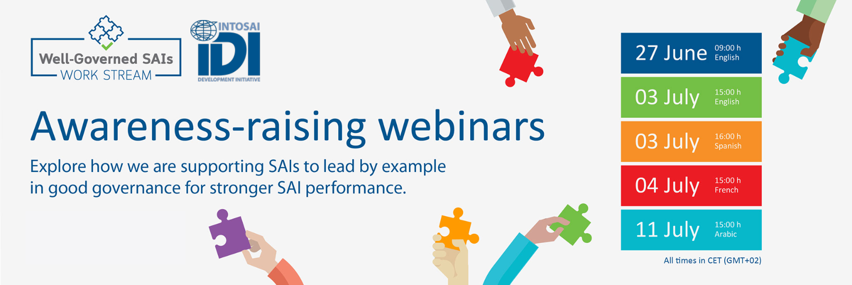 After the successful piloting of these initiatives, it is now time to introduce the SAI governance portfolio in a comprehensive way. The IDI hence cordially invites interested colleagues from SAIs, INTOSAI bodies and other partners, to join for an awareness-raising session. IDI team will outline the overall objectives of the support to well-governed SAIs and will introduce the new initiatives. Additionally, they will provide updates on the long-standing initiatives on SAI PMF and Strategy, Performance Measurement, and Reporting.